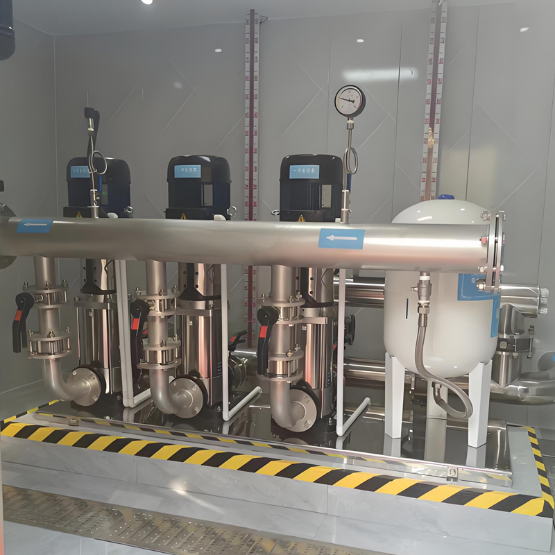 生活变频供水设备由不锈钢水泵、气压罐、变频控制柜、压力传感器及管阀配件组成。其工作原理是通过压力传感器监测供水管网压力,反馈给变频控制柜,变频器根据设定压力值与实际压力差调节水泵转速和运行台数,保持恒...